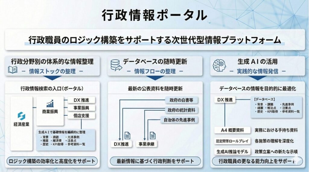 - 多忙な行政職員のロジック構築をサポートし、行政職員が人間でしか担えない領域に集中できる社会を目指します。