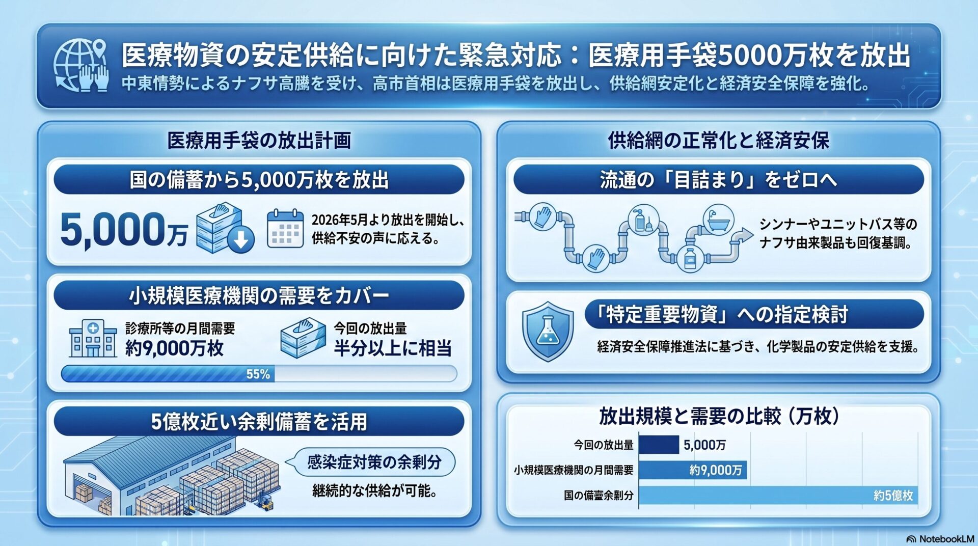 中東情勢を受けた医療用手袋5000万枚の国備蓄放出とその政策的背景