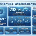 今回の対応では、国家備蓄約146日分のうち、約2割に相当する約1カ月分(約5300万バレル)が放出されます。さらに、民間備蓄からはすでに15日分が放出されており、産油国共同備蓄からも5日分が放出される方針です。これにより、有事における短期的な供給ギャップを完全に埋めるだけの十分な量の石油が市場に供給される計算となります。
