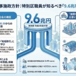 令和8年第一回都議会定例会において、東京都知事より施政方針表明がなされました。一般会計予算案は過去最大規模となる9兆6530億円。この巨額予算が示す方向性は極めて明確であり、特別区の現場実務を預かる皆様にとっても、看過できない重要な転換点となります。本記事では、この方針の中から特に23区の政策立案に直結する重要ポイントを抽出し、その背景にあるデータと、自治体現場が今なすべき具体的アクションについて解説します。
