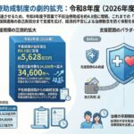 助成の想定規模についても、令和7年度の延べ13,947人(資料上の⑧34,600件と⑦13,200件の比較では2.6倍増)から、令和8年度は延べ35,018人へと拡大が見込まれています。 これは、制度の周知徹底と対象範囲の拡大により、受給者が一気に倍増することを想定した設計となっています。