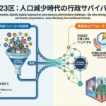 2025年12月、東京都特別区(23区)は、かつてない行政課題の複合化に直面しています。「団塊の世代」が全て75歳以上の後期高齢者となる「2025年問題」がいよいよ現実のものとなり、医療・介護の財政圧迫、生産年齢人口の減少による行政職員およびエッセンシャルワーカーの不足が、抽象的な予測ではなく、具体的な現場の危機として顕在化しています。一方で、デジタル・トランスフォーメーション(DX)の波は、導入期から実装・定着期へと移行しつつあり、行政サービスの質を維持・向上させるための強力な武器として期待されています。