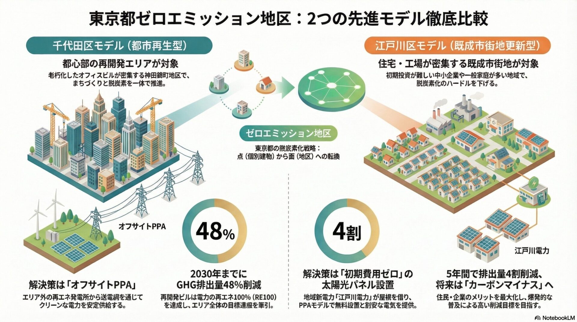 今回の東京都による選定は、自治体の環境政策が「都市構造そのものの変革」へと突入したことを示しています。千代田区は都市更新をレバレッジに、江戸川区は地域密着の組織力を武器に、それぞれの「未来の都市像」を具体化しました。