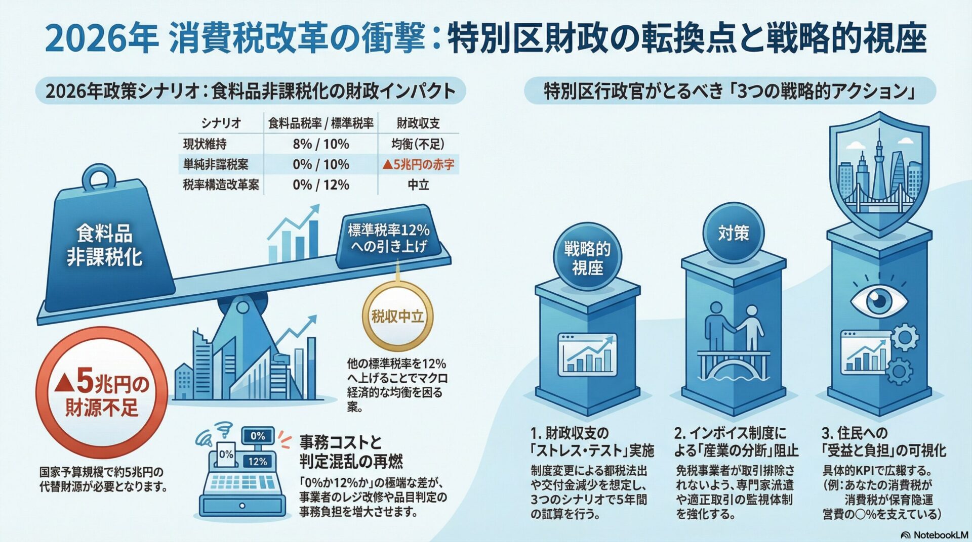 2026年時点での税収構造、社会保障費との関係、インボイス制度の影響を定量的に評価します。 - 東京都特別区における特殊性: