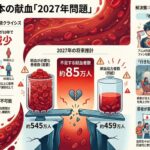 2027年に団塊の世代が後期高齢者となり医療需要が最大化する一方、献血適齢人口は減少。推計では、約85万人〜100万人分の献血者が不足する。 - 医療崩壊のシナリオ: