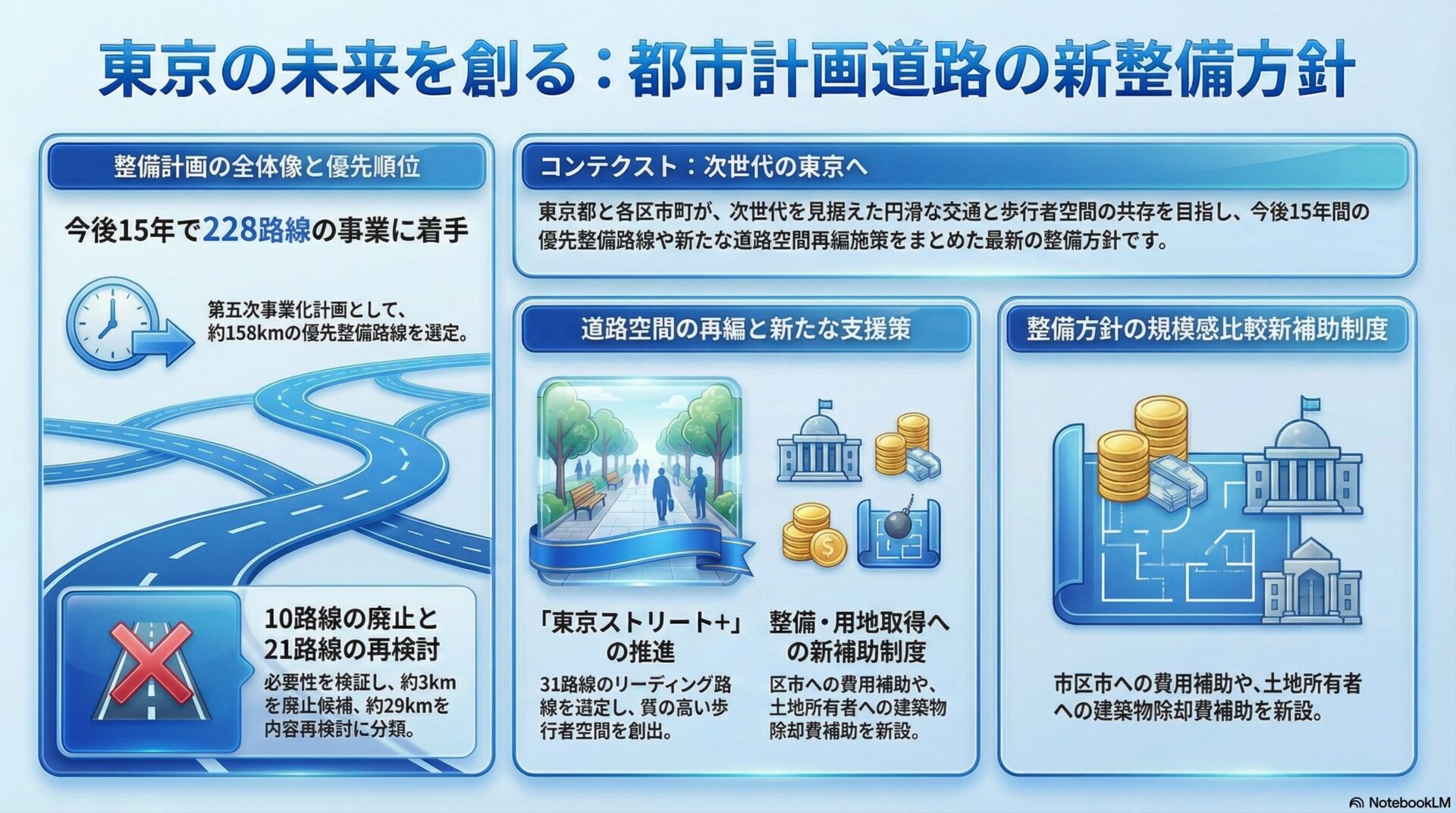 CATEGORY 21 まちづくり・インフラ整備 【東京都】まちと調和したデータセンターに向けたガイドライン策定 2026.04.01 04 東京都 masashi0025 行政情報ポータル 【東京都】東京都耐震改修促進計画を改定 2026.03.31 04 東京都 masashi0025 行政情報ポータル 【東京都】「東京における都市計画道路の整備方針」公表: 第五次事業化計画が示す15年間の道路ネットワーク戦略 2026.03.31 04 東京都 masashi0025 行政情報ポータル 【東京都】「東京都建築安全マネジメント計画」改定: 安全確保とDX推進・気候変動対応 2026.03.31 04 東京都 masashi0025 行政情報ポータル 【東京都】 自動運転バス接触事故が問う「安全設計」 2026.03.30 04 東京都 masashi0025 行政情報ポータル 【東京都】公園別マネジメントプランの改定について 2026.03.27 04 東京都 masashi0025 行政情報ポータル 【東京都】令和7年度駅前放置自転車等の現況と対策 調査結果 2026.03.26 04 東京都 masashi0025 行政情報ポータル 【東京都】あまみずグリーンインフラCONCEPT BOOK Ver.2を公表 2026.03.24 04 東京都 masashi0025 行政情報ポータル 【東京都】Roof Park Fes & Walk 2026 2026.03.19 04 東京都 masashi0025 行政情報ポータル 【世田谷区】砧公園で連日の倒木事故:公園の老朽化の兆し 2026.03.08 05 特別区(23区) masashi0025 行政情報ポータル もっと見る