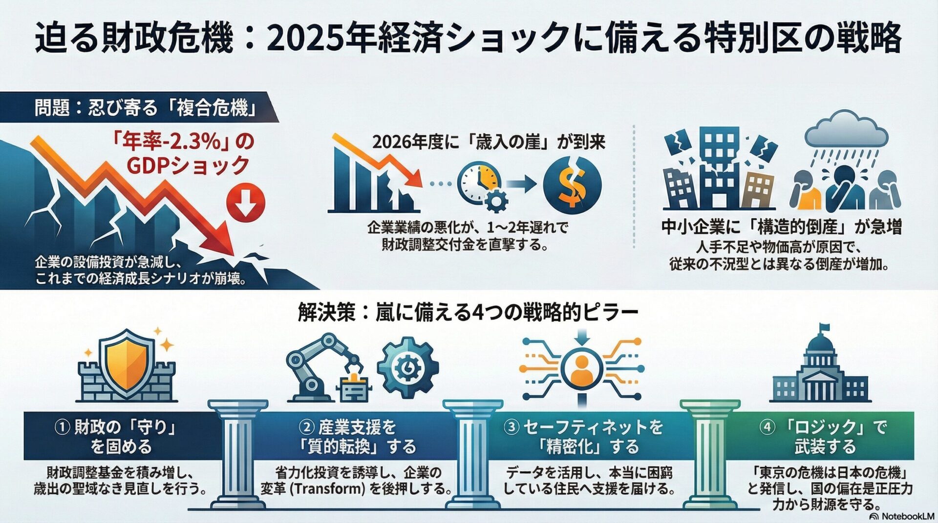 2025年のGDPマイナス成長は、2026年度(令和8年度)および2027年度(令和9年度)の特別区財政における「歳入の崖」を予言しています。