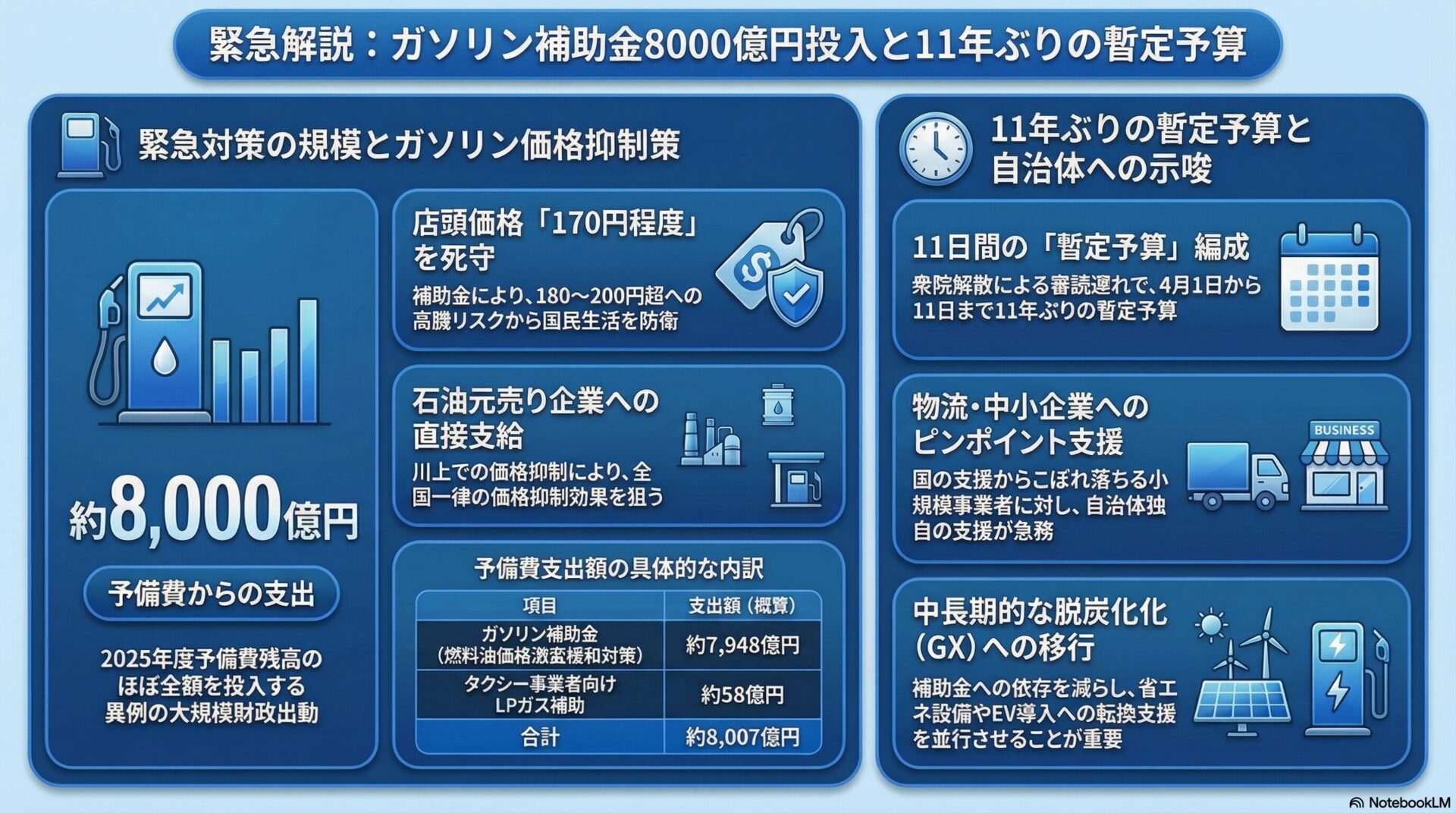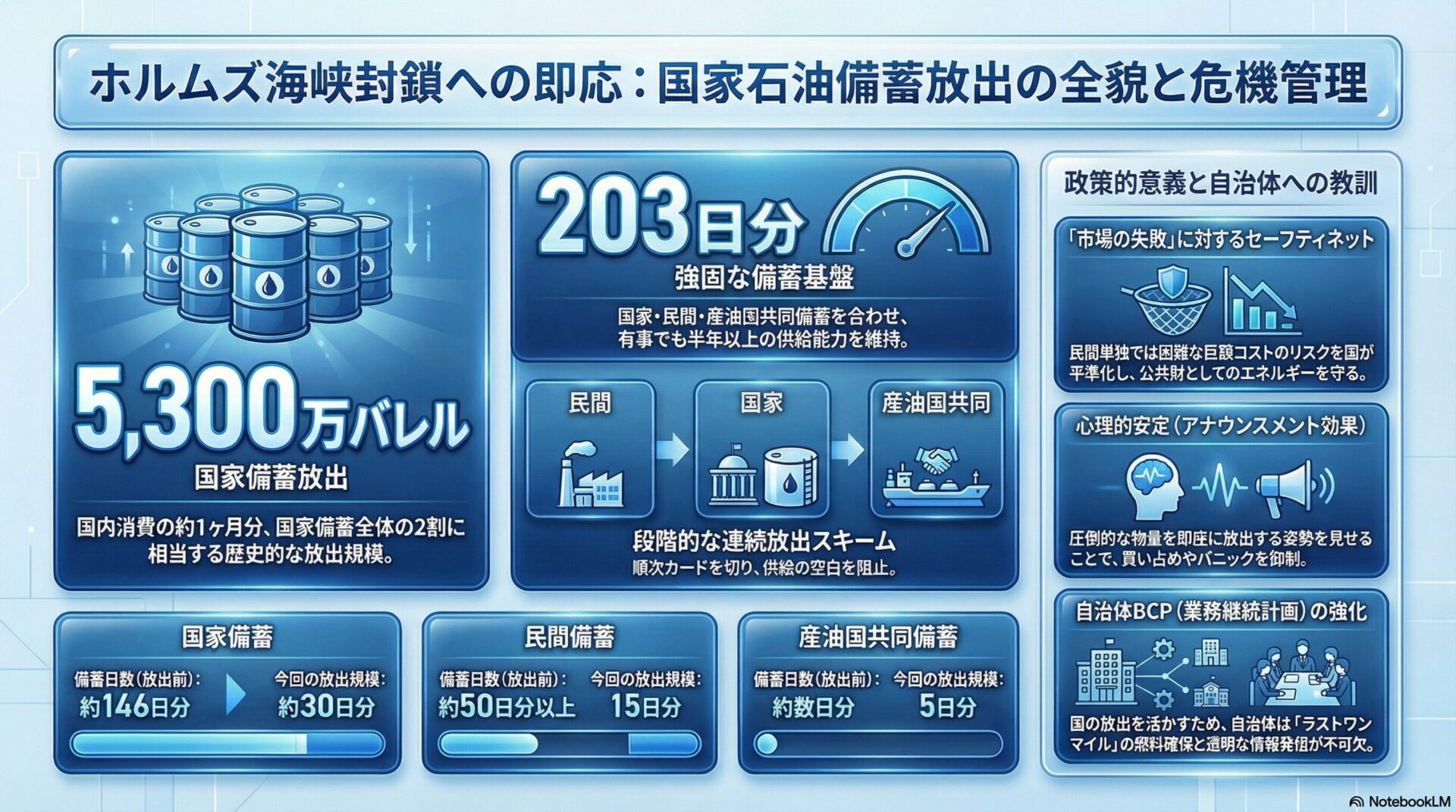 TAG 03 国 【政府】3月26日:石油の国家備蓄放出 2026.03.26 03 国 masashi0025 行政情報ポータル 【政府】ガソリン補助に予備費8000億円:閣議決定 2026.03.24 03 国 masashi0025 行政情報ポータル 【政府】暫定予算の要否判断へ 2026.03.22 03 国 masashi0025 行政情報ポータル 【総務省】地方交付税1000億円枠が引き起こす公共調達のパラダイムシフト:価格転嫁と賃上げで描く成長戦略 2026.03.19 03 国 masashi0025 行政情報ポータル 【政府】ガソリン補助金3/19再開:史上最高値190円時代の対応 2026.03.18 03 国 masashi0025 行政情報ポータル 【政府】能動的サイバー防御の導入と攻撃元無害化の決定 2026.03.17 03 国 masashi0025 行政情報ポータル 【政府】科学技術投資60兆円:特別区が描くべき次世代の政策立案 2026.03.17 03 国 masashi0025 行政情報ポータル 【政府閣議決定】第6次男女共同参画基本計画と旧姓使用の法制化 2026.03.14 03 国 masashi0025 行政情報ポータル 【政府閣議決定】国家情報局・国家情報会議の創設 2026.03.14 03 国 masashi0025 行政情報ポータル 【政府】石油備蓄の放出を表明:3月16日にも日本単独で 2026.03.11 03 国 masashi0025 行政情報ポータル もっと見る